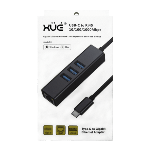 Convertidor USB-C 3.1 a Ethernet Gigabit USB 3.0 HUB (Mac OS 10) Negro marca XUE®